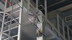 В цехе по изготовлению клеенного бруса размером 120 х 48м установлена мощная однозонная вентиляторная система увлажнения воздуха на базе 28 блоков увлажнения STREAM.