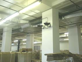 В цехе высечки и цехе склейки установлена охватывающая 2 этажа 4-зонная система увлажнения воздуха производительностью 600 л/час с блоками увлажнения SPACE Quattro, SPACE Duet и SPACE Solo.